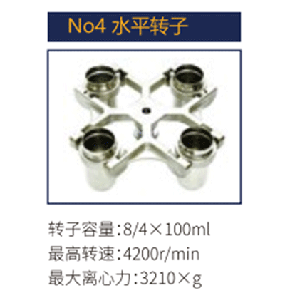 No4 | 水平轉(zhuǎn)子 | 8/4x100 ml | 4200r/min | 3210xg |