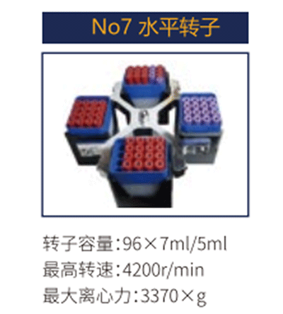 No7 | 水平轉(zhuǎn)子 | 96X7ml/5ml | 4200 r/min | 3370xg |