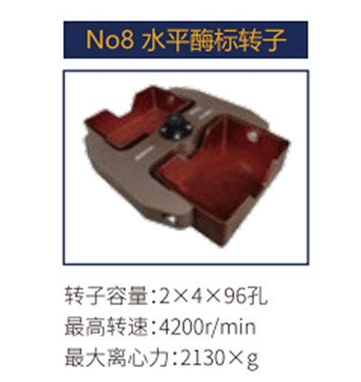 No8 | 水平轉(zhuǎn)子 | 2x4x96孔 | 4200 r/min | 2130xg |