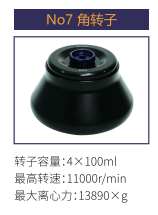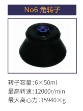 12.1 定角轉頭 6X50ml,轉速 12000 rpm,離心力 15940 ×g ,轉頭離心角度≥30°、轉頭重量≤2.4kg、滿載 11000rpm,升降速時間≤45s